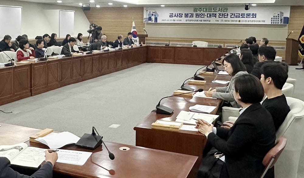 ±¤ÁÖ´ëÇ¥µµ¼°ü °ø»çÀå ºØ±« ¿øÀΡ¤´ëÃ¥ Áø´Ü ±ä±ÞÅä·Ðȸ°¡ 22ÀÏ Á¤ÁØÈ£ ±¹È¸ÀÇ¿ø°ú ½Å¼öÁ¤ ±¤ÁÖ½ÃÀÇȸ ÀÇÀå ÁÖÃÖ·Î ½ÃÀÇȸ 4Ãþ ´ëȸÀǽǿ¡¼ ¿·È´Ù./À±Âù¿õ ±âÀÚ