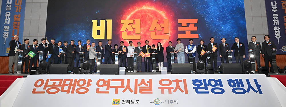 ÃÑ»ç¾÷ºñ 1Á¶2õ¾ï¿ø ±Ô¸ðÀÇ ÇÙÀ¶ÇÕ(ÀΰøÅ¾ç) ¿¬±¸½Ã¼³ ³ªÁÖ À¯Ä¡´Â Àü³²µµ°¡ ¹Ì·¡ °úÇбâ¼ú ÆÐ±ÇÀ» ÇâÇÑ Áö¼ÓÀûÀÎ µµÀü ³¡¿¡ ÀÌ·ï³½ ¼º°úÀÌÀÚ ±¤ÁÖ¡¤Àü³² Àüü°¡ ´ëÇѹα¹ ¿¡³ÊÁö ¼öµµ·Î µµ¾àÇÒ ¼ö ÀÖ´Â Áß¿äÇÑ ±â¹ÝÀÌ µÉ Àü¸ÁÀÌ´Ù.