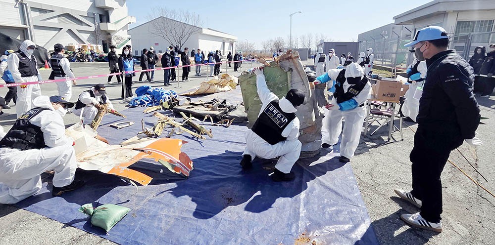 12¡¤29 Á¦ÁÖÇ×°ø ¿©°´±â Âü»ç ÀÜÇØ¹° ÀçÁ¶»ç°¡ ¿¸° 19ÀÏ ¹«¾È±¹Á¦°øÇ׿¡¼ °æÂû °ü°èÀÚµé°ú À¯°¡Á·µéÀÌ ÀÜÇØ¸¦ »ìÆìº¸°í ÀÖ´Ù./¼Çü¿ì ±âÀÚ
