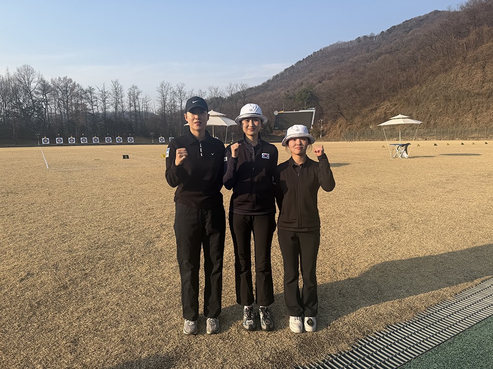 Áö³ 20ÀÏ ¿¸° 2026 2026 ¾ç±Ã ±¹°¡´ëÇ¥ 3Â÷ ¼±¹ßÀü ¿©ÀÚ ¸®Ä¿ºê¿¡¼ ±¹°¡´ëÇ¥·Î ¼±¹ßµÈ ¾È»ê(¿ÞÂʺÎÅÍ), ¿À¿¹Áø, ±è¼Çϰ¡ ±â³äÃÔ¿µÀ» Çϰí ÀÖ´Ù. <±¤ÁÖÀºÇàÅÙÅÙ¾ç±Ã´Ü Á¦°ø>
