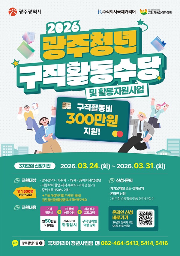 ±¤Áֽô ¼±Á¤µÈ ±¸Á÷ û³â¿¡°Ô 6°³¿ù °£ ¸Å´Þ 50¸¸¿ø¾¿ ÃÖ´ë 300¸¸¿øÀ» Áö¿øÇÑ´Ù.