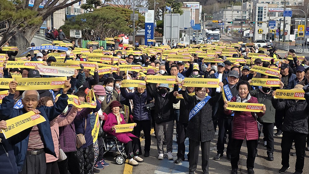 ¿µ±¤ ÇØ»ódz·Â ¹ßÀü»ç¾÷ÀÌ ÁöÀÚüÀÇ ÀÎÇã°¡ Áö¿¬¿¡ µû¸¥ ÀÚ±Ý ÁýÇà Áß´ÜÀ¸·Î º¶û ³¡¿¡ ¸ô·È´Ù. »çÁøÀº Áö³´Þ ¿µ±¤±ºÃ» ¾Õ¿¡¼ ¿µ±¤±º ±º¹ÎÁ¶ÇÕ¿¬ÇÕȸ°¡ ¡®°¡Â¥¾î¹Î¡¯À» ±ÔźÇÏ´Â ´ë±Ô¸ð Áýȸ¸¦ ¿©´Â ¸ð½À./ÁÖ¼ºÇÐ ±âÀÚ