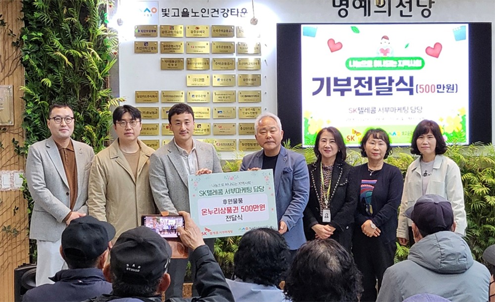 SKÅÚ·¹ÄÞ ¼ºÎ¸¶ÄÉÆÃ´ã´çÀº Áö³ 25ÀÏ ±¹³» ÃÖ´ë ³ëÀκ¹Áö ½Ã¼³ÀÎ ±¤ÁÖ ºû°íÀ»³ëÀΰǰŸ¿î¿¡ 500¸¸¿øÀÇ ÈÄ¿ø±ÝÀ» ±âºÎÇϰí, ¾î¸£½ÅµéÀ» ´ë»óÀ¸·Î º¸À̽ºÇÇ½Ì ¿¹¹æ ¹× µðÁöÅÐ ¾È½É ±³À°À» ÁøÇàÇß´Ù°í 26ÀÏ ¹àÇû´Ù.<»çÁø>