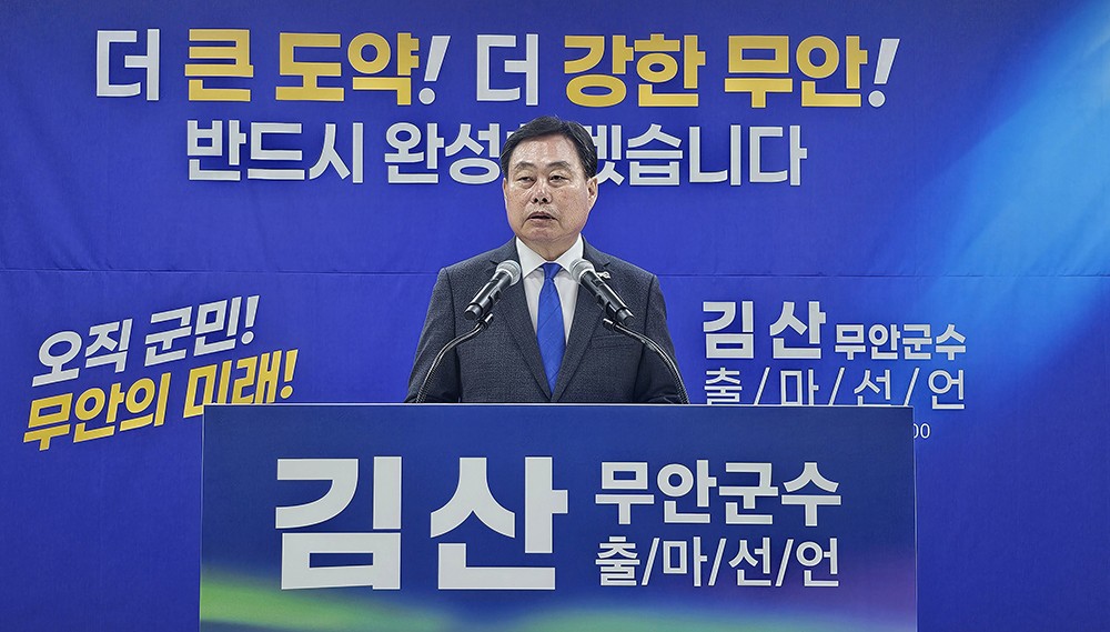 À̳¯ ±è»ê ±º¼ö´Â ¡°¹«¾ÈÀ» Àü³²ÀÇ ¼öµµ¿¡¼ Àü³²±¤ÁÖ ÇàÁ¤ÅëÇÕ¿¡ ¸ÂÃç ´ëÇѹα¹ ¼³²±ÇÀÇ Áß½ÉÀ» ÇâÇÑ ¹«¾ÈÀÇ ¹Ì·¡¸¦ À̲ø±â À§ÇØ 3¼± µµÀü¿¡ ³ª¼±´Ù¡±¸ç Ãâ»çÇ¥¸¦ ´øÁ³´Ù.