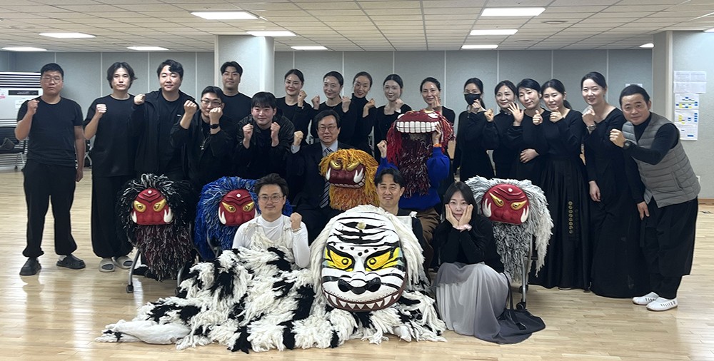 ÁøÇàÀÚÀÇ ¿Üħ¿¡ ¸ÂÃç »çÀÚ°¡ ¹«´ë¿¡ µîÀåÇß´Ù. »çÀÚÅ»À» ¾´ ´Ü¿øµéÀÌ ¸öÀ» ³·Ãß°í Èçµé¸ç ÇѹÙÅÁ µ¿ÀÛÀ» ÆîÃij´Ù. ÀÌ¾î »çÀÚ°¡ µ¿¹°ÀÇ Çü»óÀ» Èä³» ³»¸é ¸ÂÃß´Â Çü½ÄÀÇ ½Ã¿¬ÀÌ ÀÕµû¶ú´Ù.