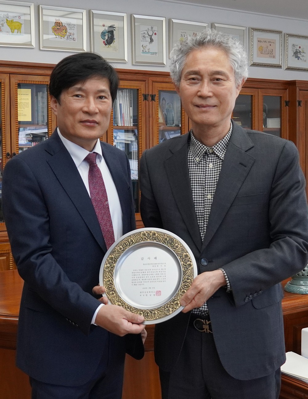 äȼ® ±¤ÁÖ»ó°øÈ¸ÀÇ¼Ò »ó±ÙºÎȸÀåÀÌ Á¤±â¼·(¿À¸¥ÂÊ) Àü ´ëÇÑÁÖÅðǼ³Çùȸ ±¤ÁÖÀü³²µµÈ¸Àå¿¡°Ô °¨»çÆÐ¸¦ ¼ö¿©Çϰí ÀÖ´Ù. <±¤ÁÖ»ó°øÈ¸ÀÇ¼Ò Á¦°ø>