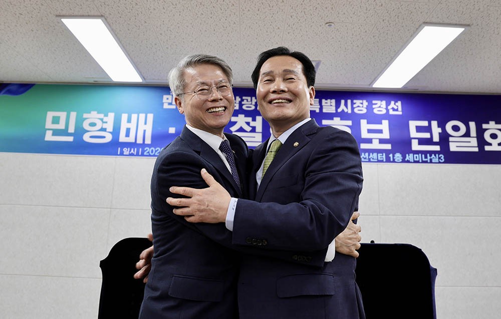 ´õºÒ¾î¹ÎÁÖ´ç Àü³²±¤ÁÖÅëÇÕÆ¯º°½ÃÀå °æ¼± Èĺ¸ÀÎ ¹ÎÇü¹è ±¹È¸ÀÇ¿ø(±¤ÁÖ ±¤»êÀ»)°ú ÁÖöÇö ±¹È¸ÀÇ¿ø(¿©¼ö°©)ÀÌ ¹Î È帷ÎÀÇ ´ÜÀÏÈ­¸¦ ¼±¾ð, ÇÏ·ç ¾ÕÀ¸·Î ´Ù°¡¿Â º»°æ¼±ÆÇÀÌ Ãâ··À̰í ÀÖ´Ù.
