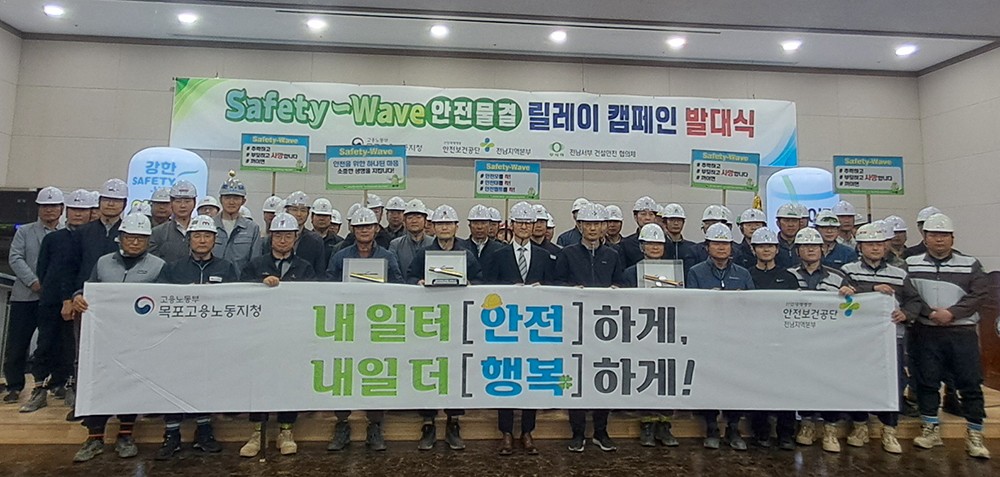 9ÀÏ °í¿ë³ëµ¿ºÎ ¸ñÆ÷Áöû¿¡ µû¸£¸é Àü³¯ »ê¾÷¾ÈÀüº¸°Ç°ø´Ü Àü³²Áö¿ªº»ºÎ¿Í ¿µ¾Ï »ïÈ£½Ç³»Ã¼À°°ü¿¡¼ ¡®°Ç¼³ÇöÀå ¼¼ÀÌÇÁƼ ¿þÀ̺ê(Safety-Wave) ¸±·¹ÀÌ Ä·ÆäÀΡ¯ ¹ß´ë½ÄÀ» °³ÃÖÇß´Ù. <»çÁø>