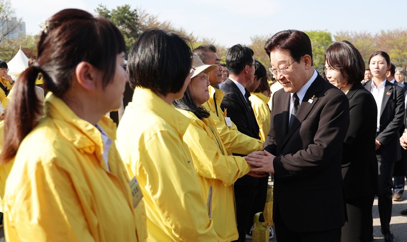 ÀÌÀç¸í ´ëÅë·ÉÀÌ 16ÀÏ °æ±âµµ ¾È»ê ȶûÀ¯¿øÁö¿¡¼ ¿¸° ¼¼¿ùÈ£ Âü»ç 12Áֱ⠱â¾ï½ÄÀÌ ³¡³ µÚ À¯°¡Á·µé°ú ÀλçÇϸç À§·ÎÇϰí ÀÖ´Ù./¿¬ÇÕ´º½º