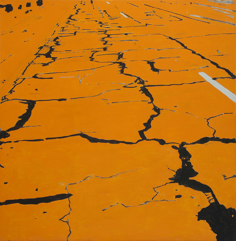ÀÛ°¡´Â ½ÇÁ¦ µµ·Î °ø»ç¿¡ ¾²À̴ Ÿ¸£¿Í ±³Åë Ç¥Áö¿ë ÆäÀÎÆ®¸¦ ĵ¹ö½º¿¡ »ç¿ëÇØ, ÀΰøÀûÀÎ Àç·á¿Í ÀÚ¿¬ÀÌ ¸¸³ª´Â ÁöÁ¡À» ȸ鿡 µå·¯³½´Ù. À̸¦ ÅëÇØ ¿ì¸®°¡ ¹ß µó°í ÀÖ´Â ¶¥¿¡ ½×ÀÎ ½Ã°£°ú ÈçÀûÀ» ´À³¢°Ô ÇÑ´Ù.