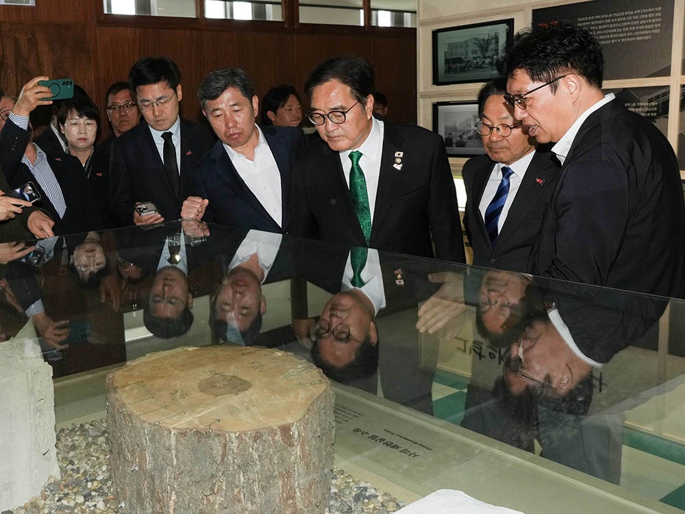 ¿ì¿ø½Ä ±¹È¸ÀÇÀåÀÌ 21ÀÏ ¿ÀÈÄ ±¤ÁÖ µ¿±¸ ¿¾ Àü³²µµÃ» ³»ºÎ¸¦ µÑ·¯º¸¸ç µµÃ»¿¡ ¹ÚÇô ÀÖ´ø °è¾ö±ºÀÇ ÃÑź ÈçÀûÀ» º¸°í ÀÖ´Ù./Á¶¿µ±Ç ±âÀÚ