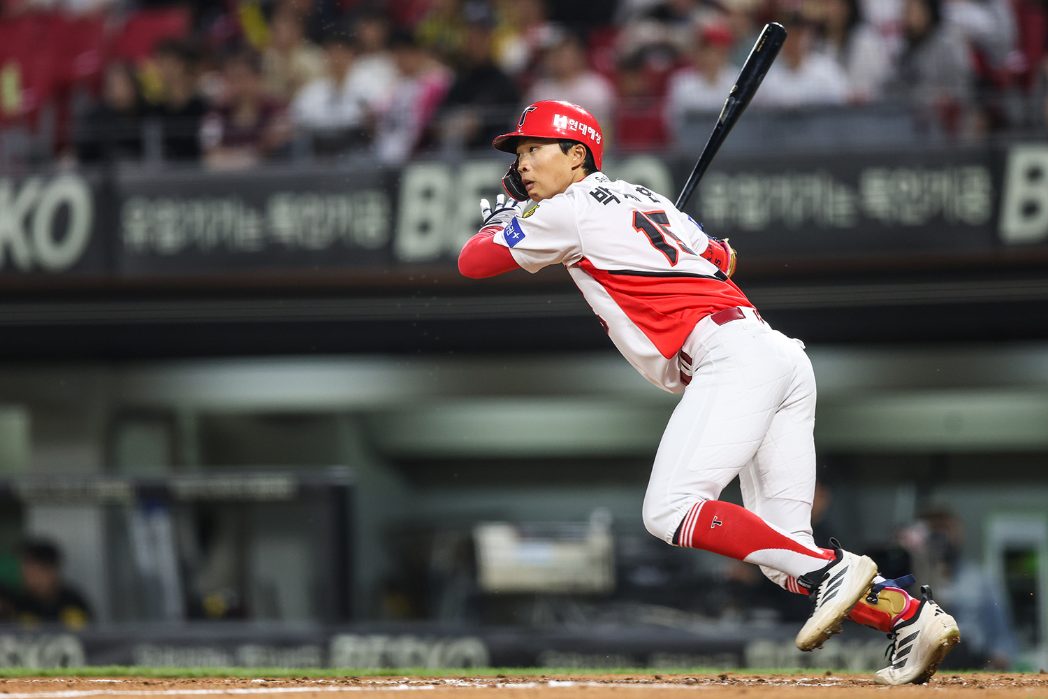 KIA ŸÀ̰ÅÁî ¿Ü¾ß¼ö ¹ÚÀçÇöÀÌ Áö³ 15ÀÏ ±¤ÁÖ Ã¨ÇǾð½ºÇʵ忡¼ ¿¸° Ű¿ò°úÀÇ È¨ °æ±â¿¡¼ 2·çŸ¸¦ ¶§·Á³»°í ÀÖ´Ù. /»çÁø=KIA ŸÀ̰ÅÁî Á¦°ø