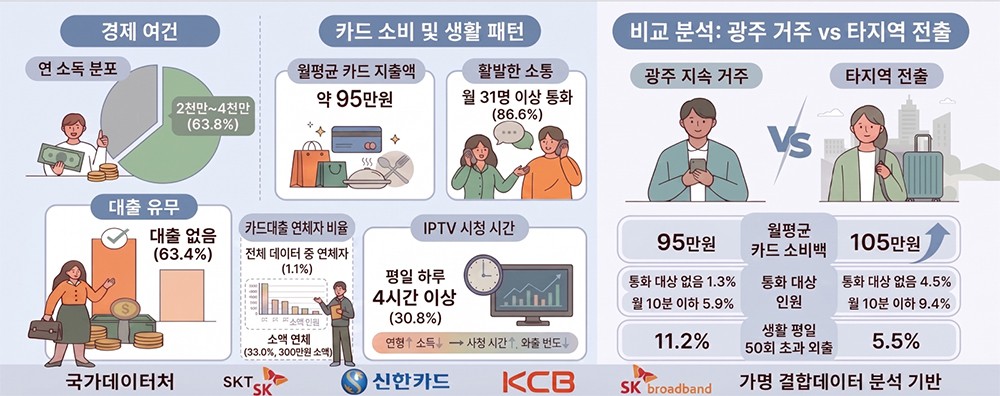 ±¤ÁÖ °ÅÁÖ 1ÀÎ °¡±¸¿Í Ÿ Áö¿ª ÀüÃâ °¡±¸ °£ Â÷À̵µ È®ÀεƴÙ. Ÿ Áö¿ª ÀüÃâ °¡±¸´Â ±¤ÁÖ °ÅÁÖ °¡±¸º¸´Ù °í¼Òµæ ºñÀ²(¿¬ ¼Òµæ 4õ¸¸¿ø Ãʰú)°ú Ä«µå ¼Òºñ¾×(Æò±Õ 105¸¸¿ø)ÀÌ ³ô¾ÒÁö¸¸ ÅëÈ ´ë»óÀÌ ¾ø°Å³ª ¿ÜÃâ ºóµµ°¡ ³·Àº ºñÀ²ÀÌ ³ô¾Æ »çȸÀû °í¸³ °¡´É¼ºÀº ´õ Å« °ÍÀ¸·Î Á¶»çµÆ´Ù.