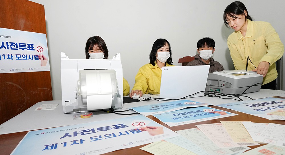 Á¦9ȸ Àü±¹µ¿½ÃÁö¹æ¼±°Å »çÀüÅõÇ¥(5¿ù29-30ÀÏ)¸¦ 1°³¿ù¿© ¾ÕµÐ 28ÀÏ Àü³²´ëÇб³ ÄÁº¥¼ÇȦ »çÀüÅõÇ¥¼Ò¿¡¼­ ±¤ÁÖ ºÏ±¸ ¿ëºÀµ¿ÇàÁ¤º¹Áö¼¾ÅÍ ÅõÇ¥ °ü¸®°üµéÀÌ ÅõÇ¥¿ëÁö Ãâ·Â µî 1Â÷ ¸ðÀǽÃÇèÀ» Çϰí ÀÖ´Ù./Á¶¿µ±Ç ±âÀÚ